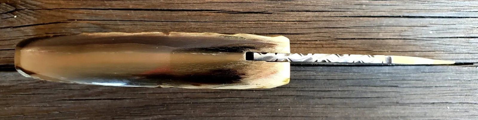 Un couteau corse pliant de fabrication traditionnelle Labellisé avec une Lame acier épaisseur de 3 mm avec un manche réalisé en corne de bélier